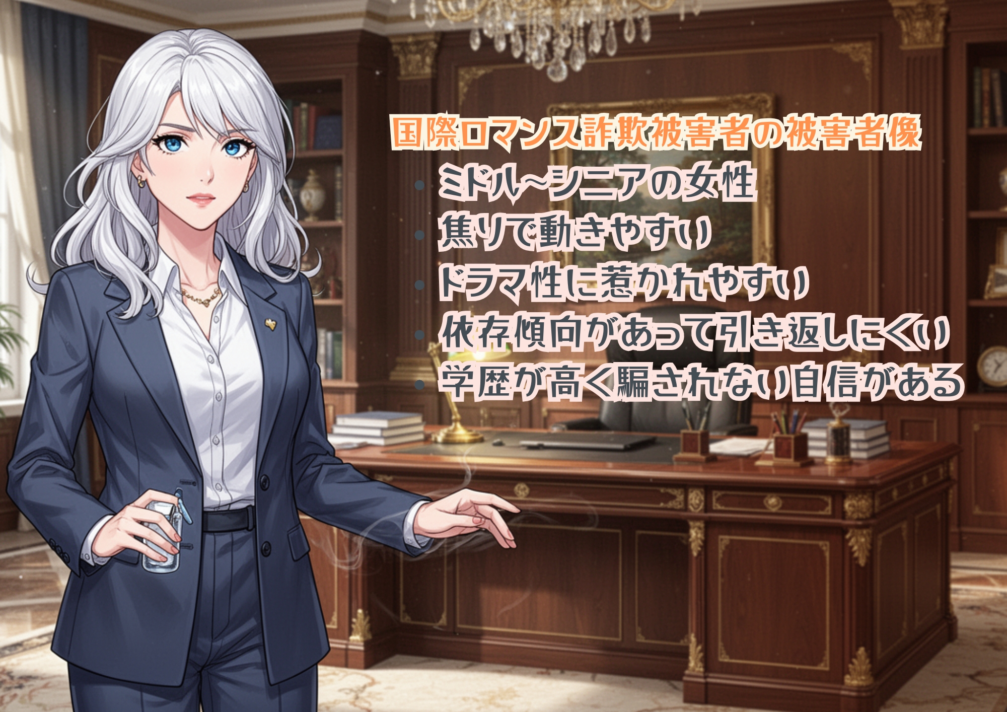 - 学歴が高いこと:意外ですが、学歴が防波堤にならない可能性が示されました。著者は、むしろ「自分は見抜ける」という過信が入り込む余地を議論しています。