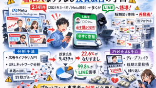 Meta上のなりすまし投資広告2,141件を東大の研究チームが徹底分析。著名人を悪用しLINEへ誘導する巧妙な手口や、最新のURLネットワーク検知手法、プラットフォーム事業者に求められる対策について、専門家視点で解説します。