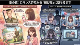 国際ロマンス詐欺の被害者がなぜ「麻薬の運び屋」にされてしまうのか?2年間のチャットログを分析した最新論文を解説。睡眠奪取や署名を用いた高度なマインドコントロールの手口、そして最終段階「困惑」の恐ろしさを専門家視点で解き明かします。